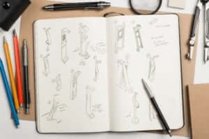 Os primeiros rascunhos mostram a evolução do projeto, já que a principal característica do Pix Force é a ausência de toques em botões, telas ou comandos. Um dos maiores desafios era criar um modelo que contemplasse as mais variadas alturas, já que uma das potencialidades do Pix Thermo é a capacidade de medir a temperatura de cerca de 12 pessoas por minuto.