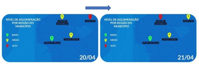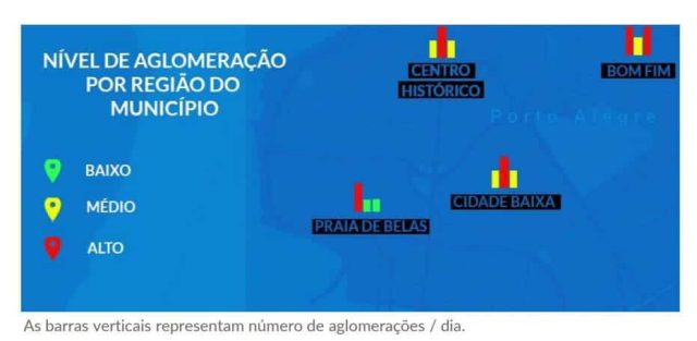 Em caso de identificação de aglomerações acima do padrão predeterminado, um alerta é enviado para os órgãos competentes. Os dados são então disponibilizados em formato de geodatabase (dados atrelados a localização). Dessa forma, é gerado um mapeamento temporal das aglomerações, o que auxilia a tomada de decisão por parte dos responsáveis e autoridades.